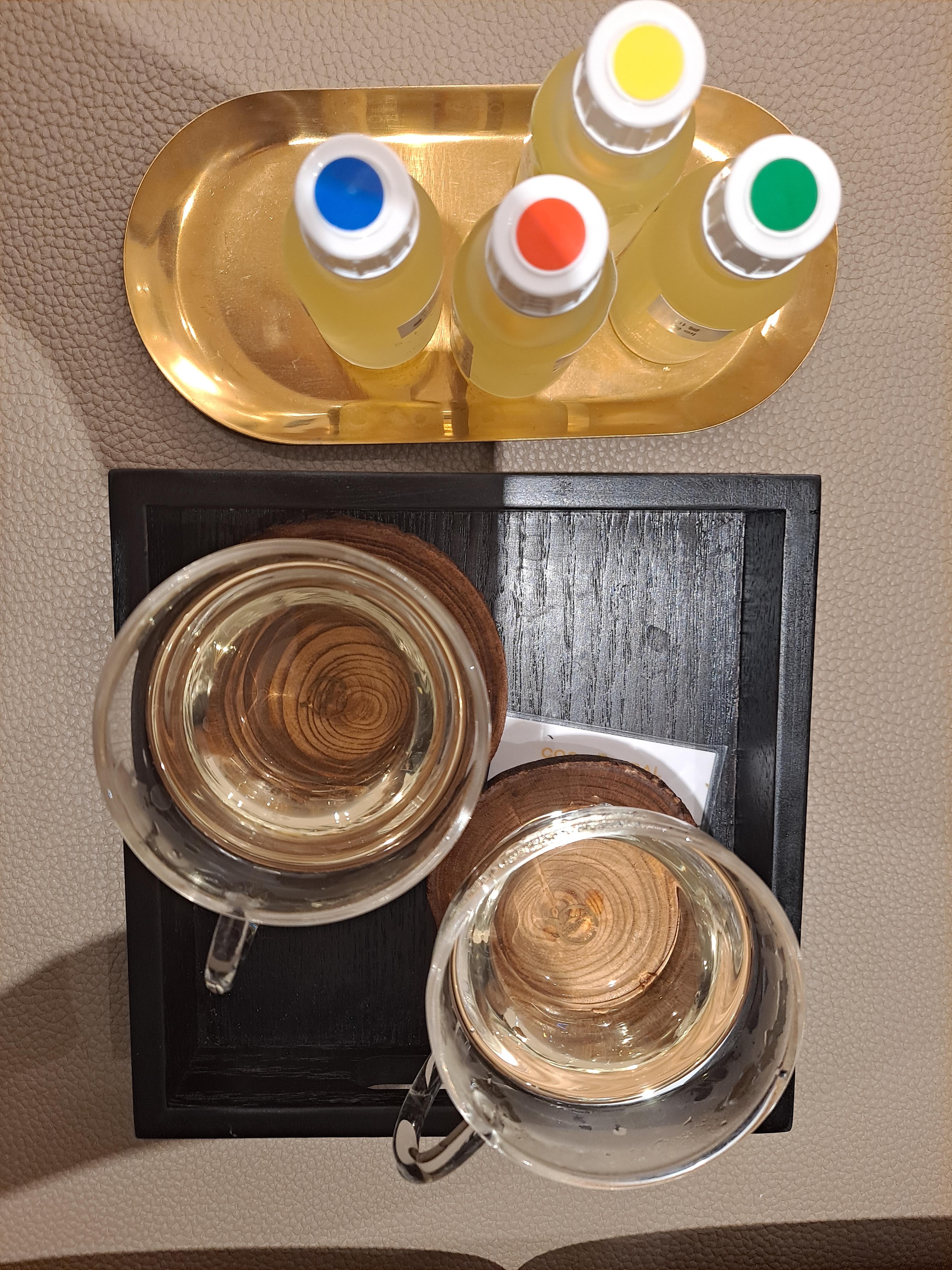 아로마 마사지이기에 향을 맡아보고 4개 오일 중 1개를 고릅니다.